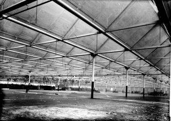 - Scope and ContentShows interior of multi-bay works building showing non-glazed panels of roof.