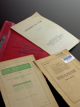 - Scope and ContentThe collection focuses on various aspects of chemical warfare, and is particularly detailed on research into, and protection from, the effects of chemical weapons on people and the environment. It contains a wide range of government manuals, guides, instructions and regulations relating to precautions against, and treatment for, exposure to chemical weapons, as well as in-depth analysis of available protective equipment, primarily types of gas respirator, and test results of their effectiveness. The collection also covers aspects of meteorology as it relates to the use of chemical weapons, including guides on understanding weather front changes, wind classification and analysis, and maps annotated with meteorological observations (presumably used during training drills). To a lesser extent, the collection documents other aspects of warfare, including the nature and effects of nuclear explosions, and reports on armoured fighting vehicles (AFVs) and other military vehicles and artillery. The majority of the collection, approximately 70%, relates to the United Kingdom, but there is also significant coverage relating to other countries: the United States (10%), Germany (5%), Russia (5%), and India (2%), with the remainder of the collection relating to Austria, Belgium, China, Italy, Spain, Yugoslavia, Sweden, Norway, Switzerland, Turkey, Japan, Malaysia, Greece, Hungary, France and Finland. The smaller foreign collections comprise mostly reports on the design of their chemical warfare protective equipment, and correspondence between British war departments and their foreign counterparts. Some of the material is in foreign languages.