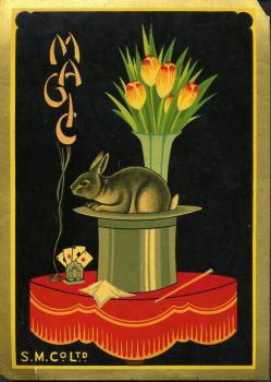 - Scope and ContentColoured shipper's ticket, showing a magician's table, with hat, rabbit, wand, handkerchief, playing cards and tulips. Cigarette smoke rises to form the word 'Magic', and S.M. Co. Ltd is printed in the bottom corner. Printed on a black background. Two copies.