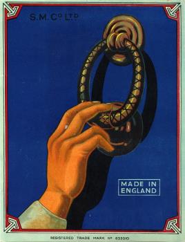 - Scope and ContentColoured shipper's ticket, showing a hand using a door knocker.
