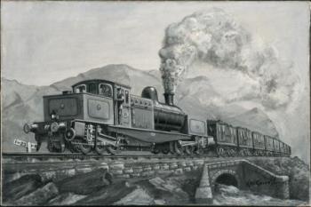- Scope and ContentPainting showing a 0-6-0 + 0-6-0 Garratt locomotive, signed by the artist, b/w. This image was subsequently used in early Garratt publicity brochures and on H W Garratt's business stationery. A copy of this painting also appeared in The Model Engineer and Electrician August 5 1909, p.127, entitled "A Garratt 0-6-6-0 At Work". Canvas supplied by H Nathan & Sons of 119 Deansgate, Manchester.